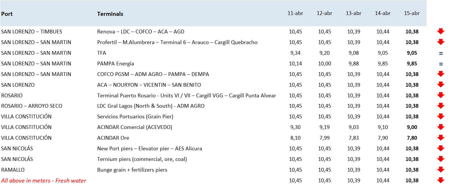 thru Mitre Channel (River Plate main channel, mouth of Parana River till Zona Comun section – outbound basis) including 0.60 m UKC safety margin.